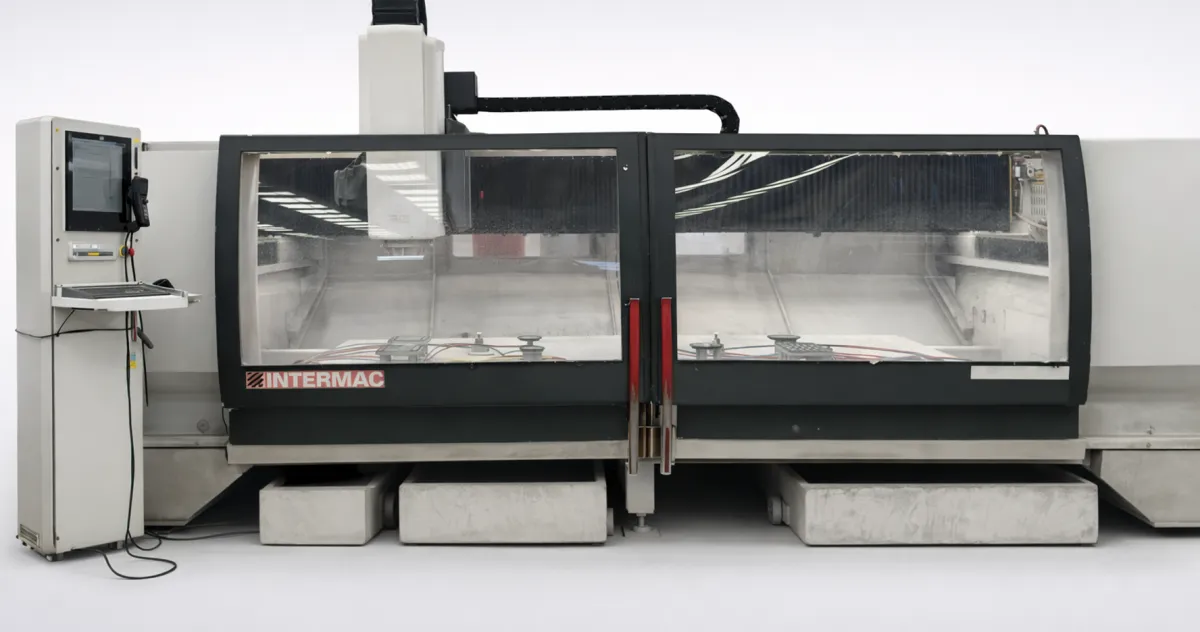Contamos con CNC pára corte de piedra y cuarzos de formas irregulares asi como CNC Sierra Puente de Agua para cortes rectos de Piedra y Cuarzos